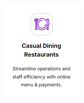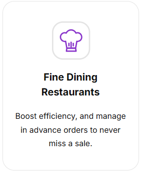 Restaurant types Our all-in-one software boosts online presence and online sales for various types of restaurants. Learn which restaurant types we help. Try for free, no commitment!